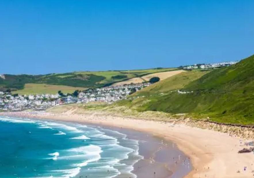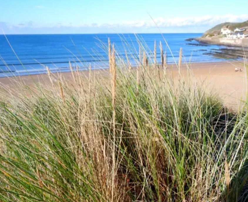 Facing westwards into Bideford Bay, Surfers and swimmers, kayakers, and paddle boarders will love this long sandy stretch of sand. The main beach is backed by the grassland of Northam Burrows Country Park and the imaginatively named Pebble Ridge.